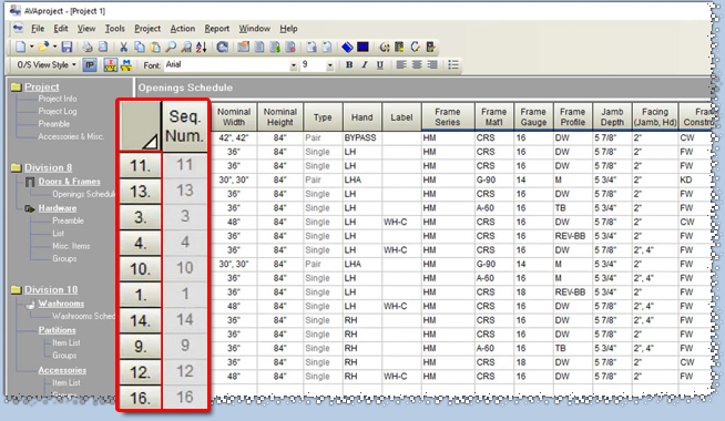 The ability to re-sort the AVAproject Openings Schedule is extremely convenient, and offers a variety of options in terms of presentation and editing. Estimators will often want to manipulate the sequence of the data in the schedule in order to group openings by various pertinent details, such as opening type, handing, label, etc. This is a great way to see and share information with colleagues and clients, however it does change the original order in which openings were scheduled.