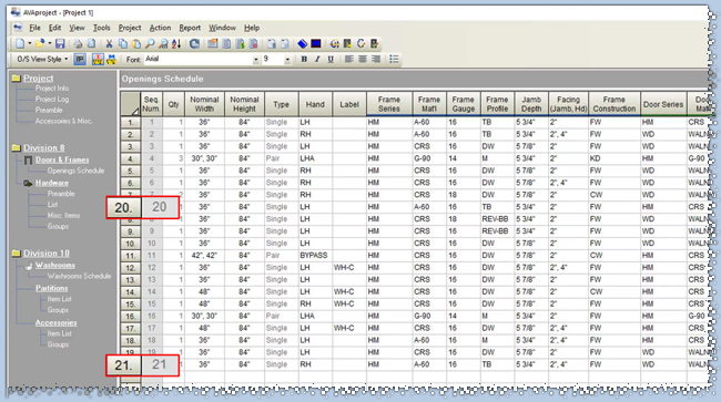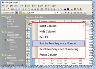Row Sequence Numbers were built for the purpose of preserving a specific order in which data is to be presented. As data is entered into the Openings Schedule, "Sequence Numbers" are automatically assigned to each row as it's added.
