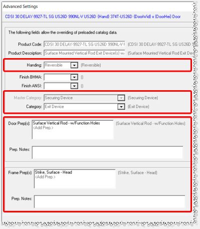Each piece of hardware is assigned the door and frames preps required for its use on an opening. Preps are identified using a standardized index that is automatically cross-referenced to any door or frame catalog provided by AVAware – ensuring that preps are neither forgotten nor left unpriced. |