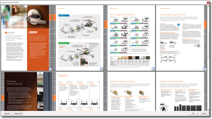 In addition to the information provided in the manufacturer's price books, most catalogs offer companion catalog cut libraries. AVAware provides cut sheets, complete with high resolution and/or vector based images, as provided by the manufacturers. Each page of the library is manually linked to the product or products they refer to. When creating a submittal document, AVAproject automatically gathers and organizes the catalog cuts associated with the products specified in the project and includes them in the document.