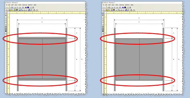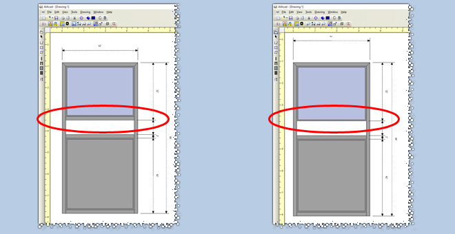 Once again, this type of opening can be created in AVAcad by drawing a stick to frame the bottom of the glass and setting its face to ZERO. When the material list for this type of elevation is generated, AVAcad determines that no glazing material is required for the bottom edge of the glass.