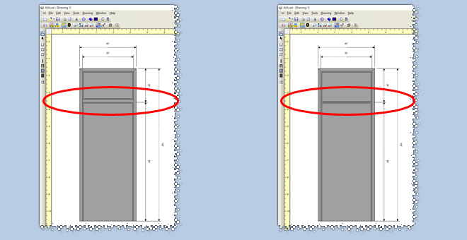 This type of elevation is created exactly as one would create a typical transom frame with a horizontal mullion. In order to retain the separation between the door and glass, without a mullion, simply set its face to ZERO.