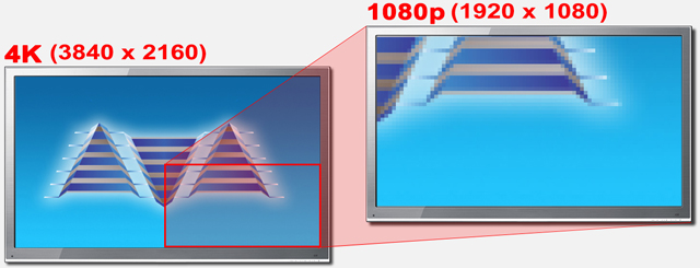 The current proliferation of low cost 4K televisions provides an excellent opportunity to consider one of them as an alternative to a conventional computer monitor. A "4K" television actually contains 4 times the pixels of its 1080p (commonly referred to as "2K") counterparts. The image size is actually twice in both the horizontal and vertical directions, resulting in a total pixel count of 3840 x 2160.