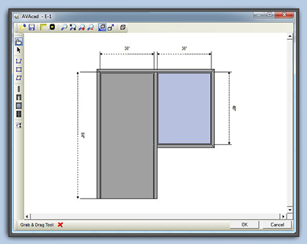 One of the most convenient features of AVAproject is the embedded AVAcad facility that it contains. An elevation can be edited by simply highlighting it and clicking on the “AVAcad” icon. An AVAcad editing pane is brought up with the selected elevation loaded and ready.