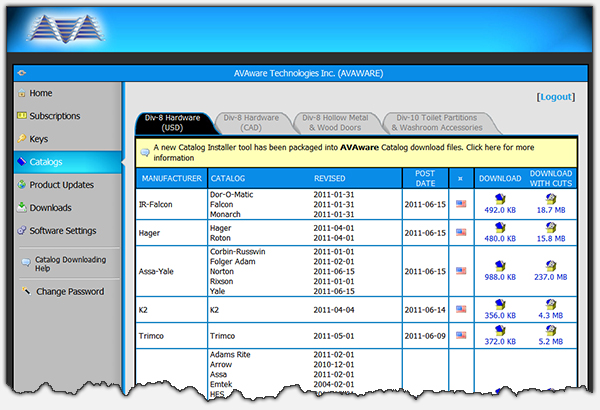 The AVAware.com Customer Login Area Catalogs Section