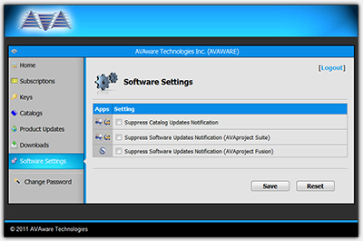 The New AVAware.com Customer Login Area Software Settings Section
