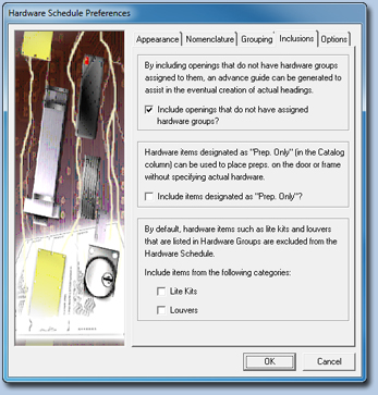 By default, AVAproject only groups openings that have hardware groups assigned to them; the assumption being that if a given opening has no hardware, it doesn’t belong on the hardware schedule. Under the “Inclusions” tab there is an option labelled “Include Openings that do not have assigned hardware groups?”. When this option is selected, all openings are considered and represented in the hardware schedule.