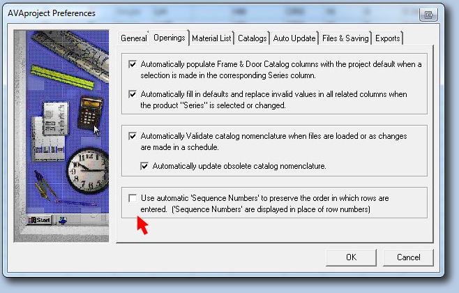 Instead of using traditional “row numbers”, users can elect to use “row sequence numbers” by selecting the corresponding option in the “Openings” tab of the “AVAproject Preferences” dialog.