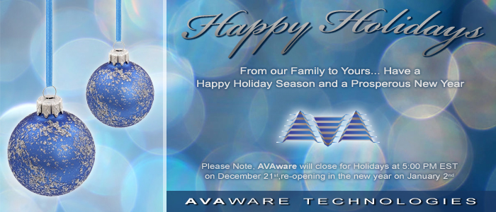 On behalf of all of us at AVAware, we wish to thank all our valued clients, vendors and corporate partners for all their past and ongoing support. From our family to yours, we wish to extend our best wishes for a safe and happy holiday season and a very prosperous new year.