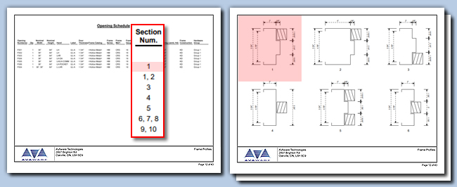 These numbers are used to automatically populate the special Section Number column in the Openings Schedule. When the Submittal Package is generated, the numbers assigned to the profiles corresponding to each opening are filled in automatically - making it easy for the reader to find the profiles that apply to any given opening.