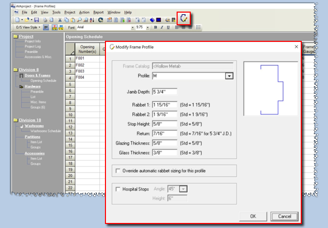 While much of the parametric data used to create frame profiles is based on opening specifications, manufacturer standards and industry norms, it often becomes necessary to modify them to suit the specifics of a given project.